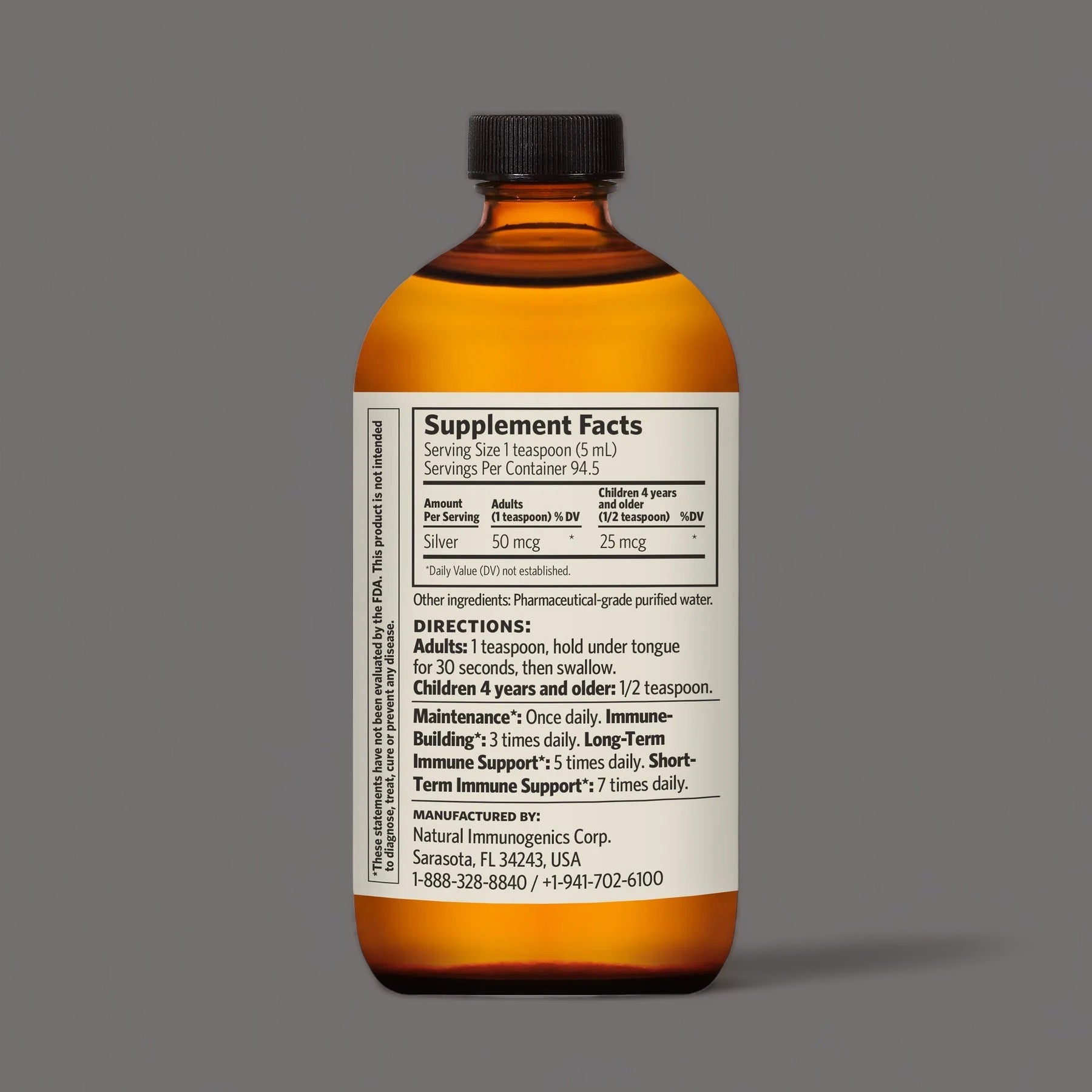 The tiny particles in Bio-Active Silver Hydrosol are so powerful, a little goes a long way. And with a low 10 ppm (parts-per-million) concentration in each dose, it’s safe for the whole family to take up to 7x daily.